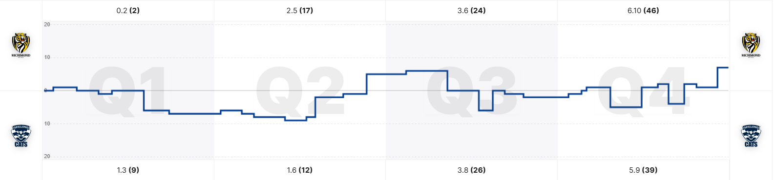 Based on that we take a quarter of the average margin and subtract that from 15 to get our points. Here we are looking at the margin regardless of who won – a match where one team is 10-0 but the average margin is 20 points will still score relatively well in this category.